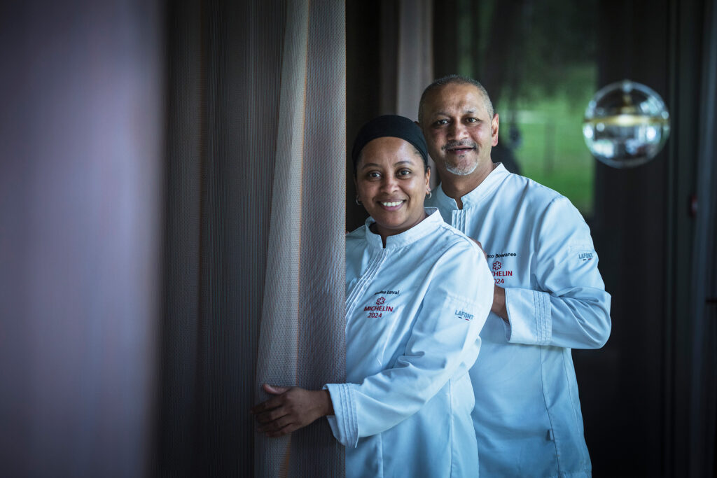 In der küche von Franco Bowanee entdeckt man eine harmonische mischung aus schönen produkte, die Franzosen, von denen einige direkt aus dem gemüsegarten des Schlosses, mit seinen 140 sorten obst, gemüse und gewürzen der Insel Mauritius.